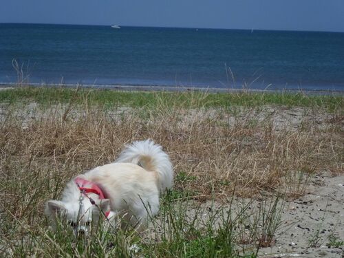 久しぶりのお天気・・・ハピちゃんとテクテクトコトコ1時間かけて海岸までお散歩・・・(*^。^*) あらぁ~~~歩道とはいえ、車道の横だよ。車の排気ガスにまみれながらハピちゃん がんばって歩いてくれました^_^; 途中・・・半分ダウンして、ママが抱っこも…