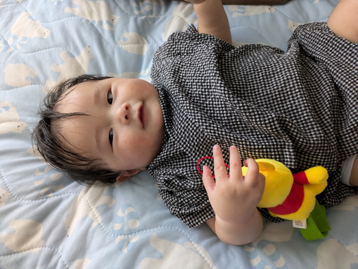 2024-07-08 チビチビ太👶 ちび子たちが七夕さん🎋祭り?!遊びに行った間、チビチビ太👶のお守りした😀✌ この暑い中、チビチビ太👶連れてはさすがにチビチビ太👶かわいそう…😅 お守りすることにした…(笑) 家でゆっくりのんびりチビチビ太👶遊んだ…😁 笑顔が増え、かわゆいさかり♥ 見ていて飽きない!!天使の笑顔!! 癒やされるなぁ…♥ 幸せ幸せ…(*˘︶˘*).。.:*♡