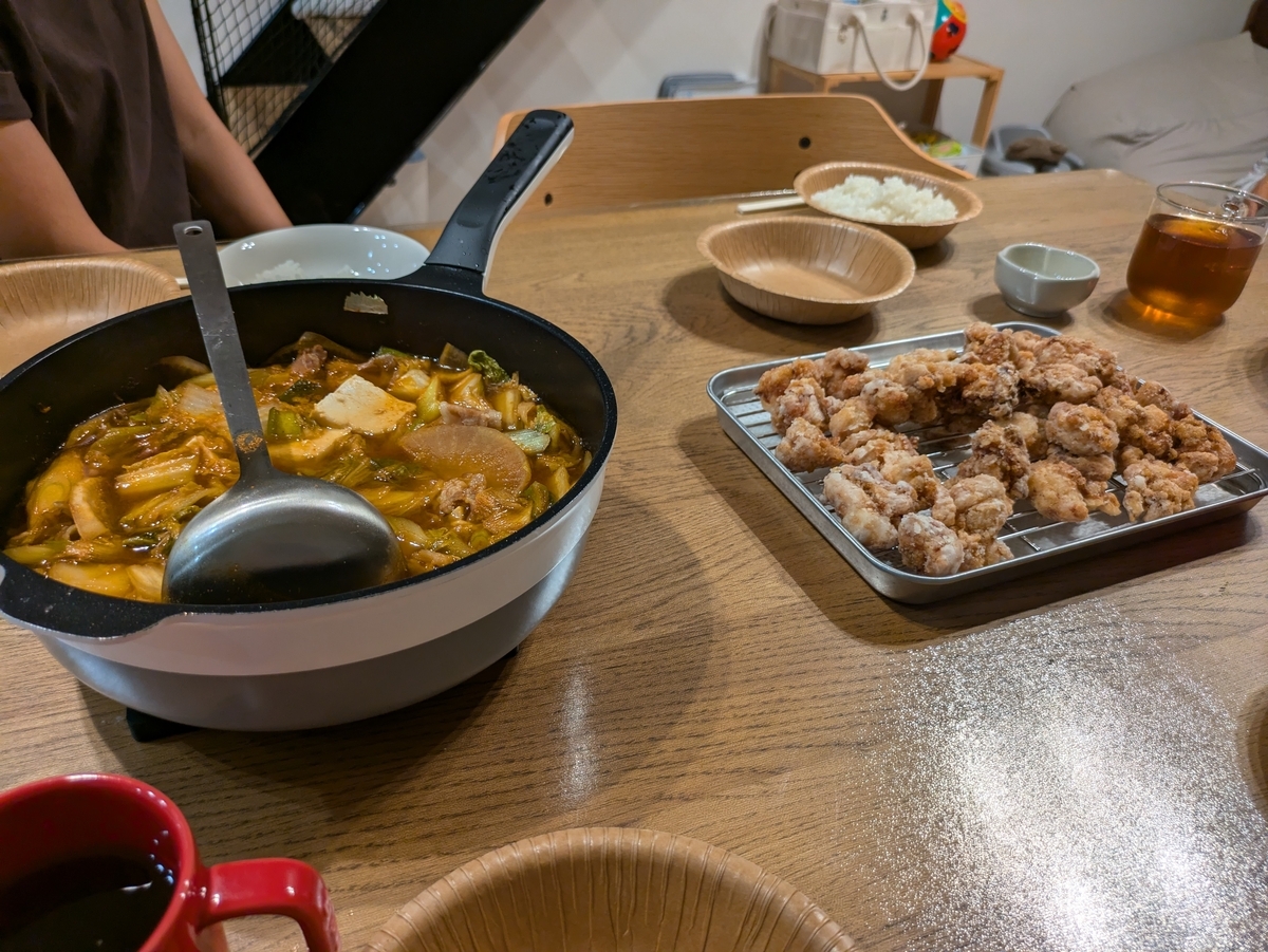 金曜日、休みのため…婿さん帰宅を待ち…みんなでワイワイガヤガヤ赤から鍋🍲&唐揚げを食べた…😁✌